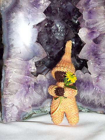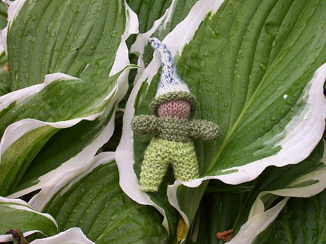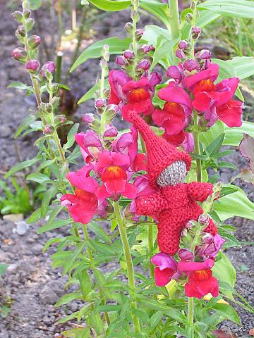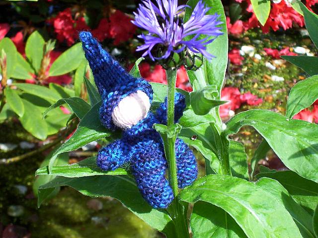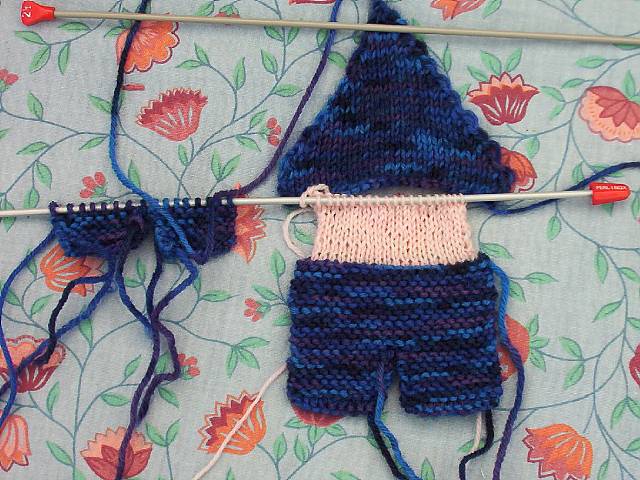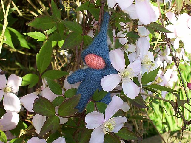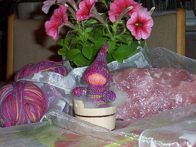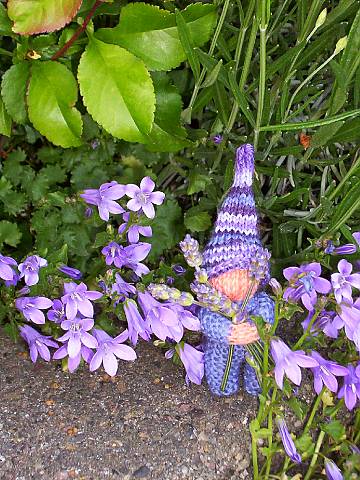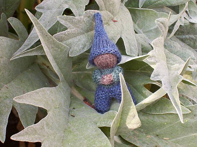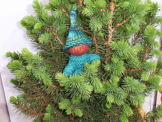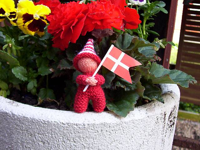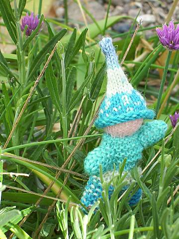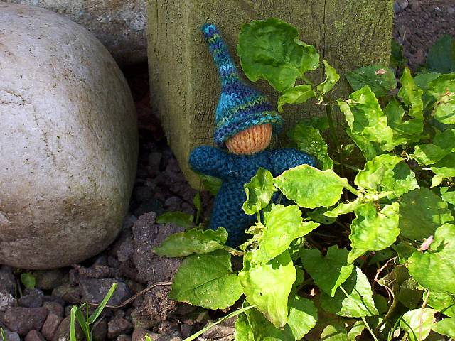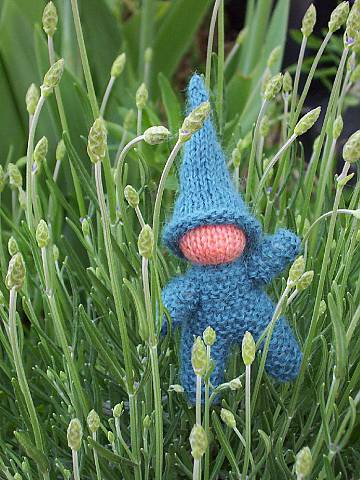| Nette inspirerede mig lige til at lave denne lille fyr. Den faldt i god jord herhjemme inden den var færdig - hos en teen ager. Større ros kan man vel ikke få. Der bliver brugt 3 g strømpegarnsrester til hver gnom, og en lille klat uld. Her er brugt noget af det hjemmefarvede uld, jeg lavede igår.
